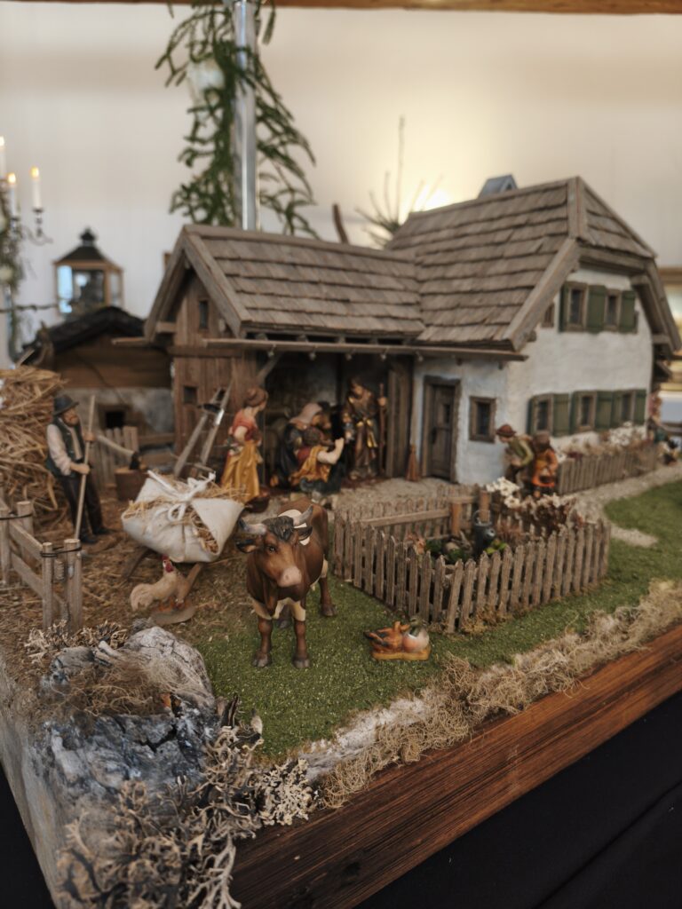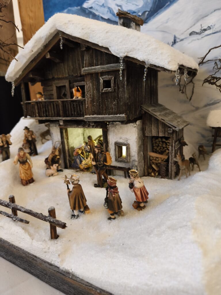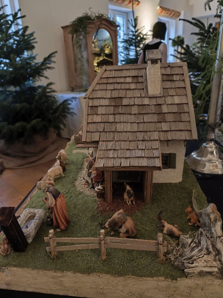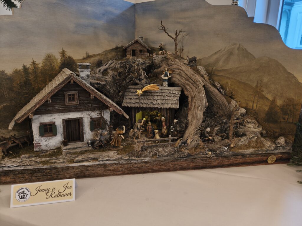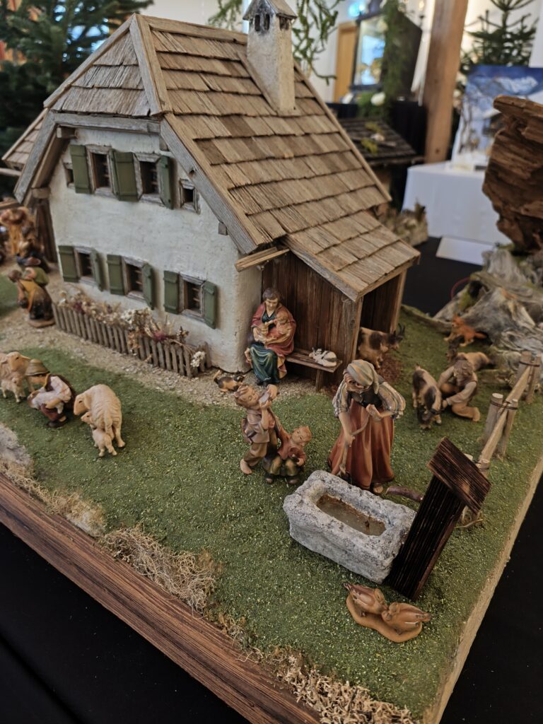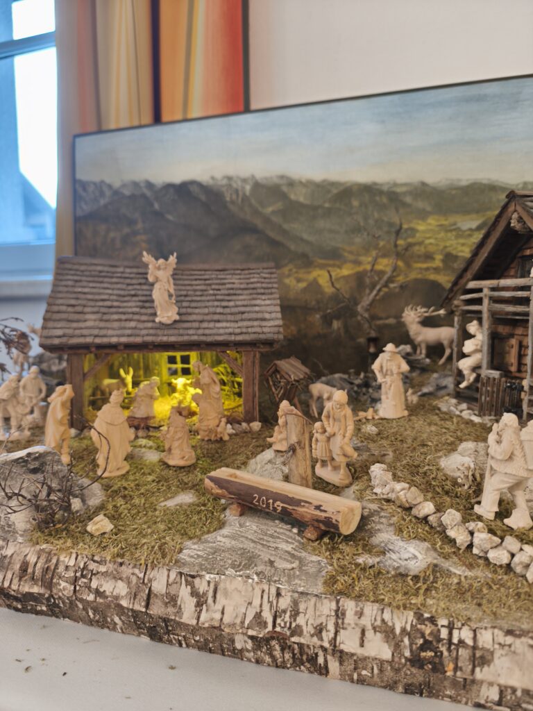 Die neu gebauten Krippen werden jährlich am 3. Adventwochenende im Katholischem Pfarramt in Bad Goisern ausgestellt. Zusätzlich zu den Kurskrippen werden Leihgaben unserer Vereinsmitglieder zu bewundern sein. Bewundert die Kripperl im wunderschönen Ambiente des Pfarrhofes und mit etwas Glück, könnt ihr die Verlosungskrippe gewinnen. Mit dem Kauf eines Loses unterstützt ihr unseren Verein. Auch die Einnahmen aus unserem „Kripperl-Cafe“ kommen unserem Verein zu Gute. Gern können Kuchen/ Torten auch nach Hause mitgenommen werden.