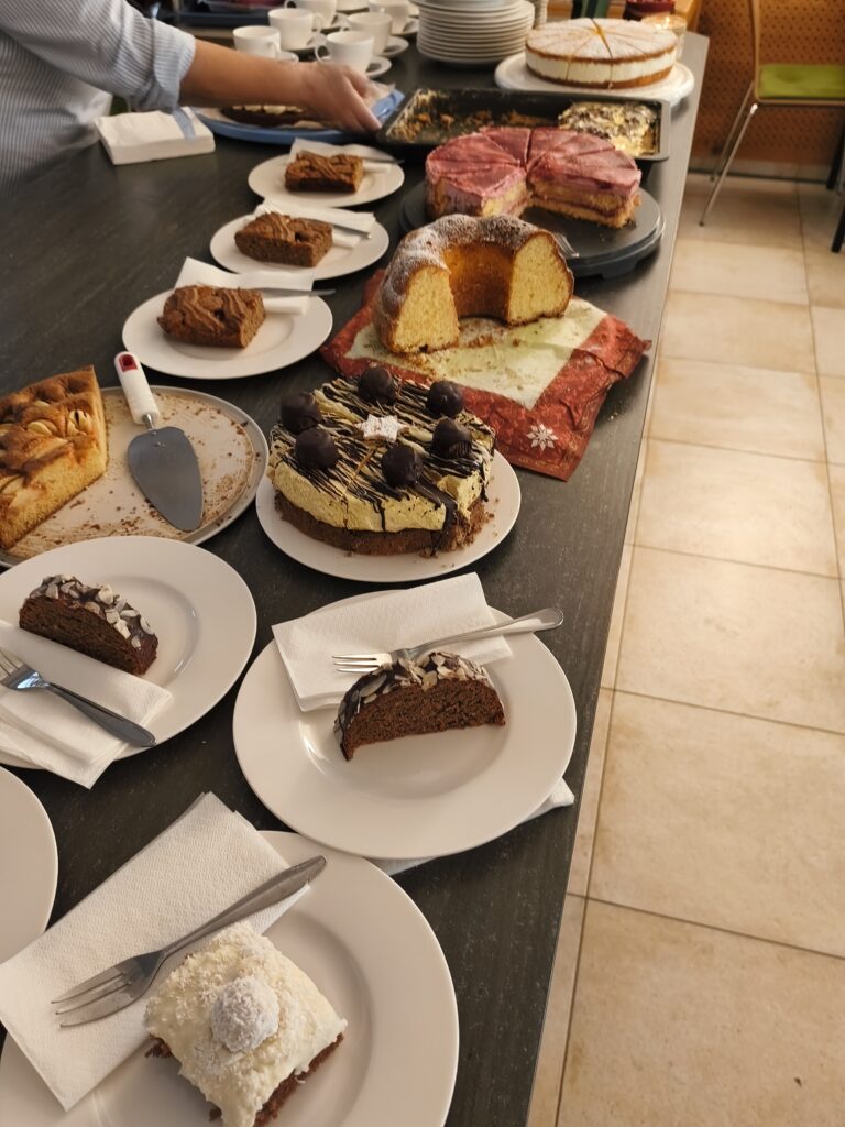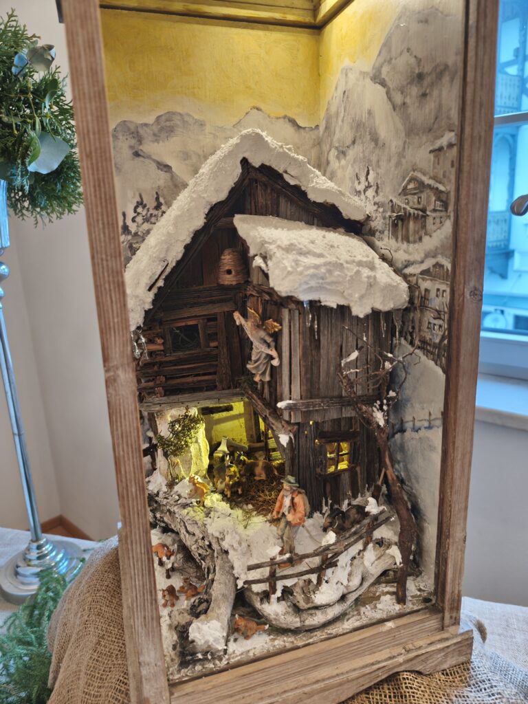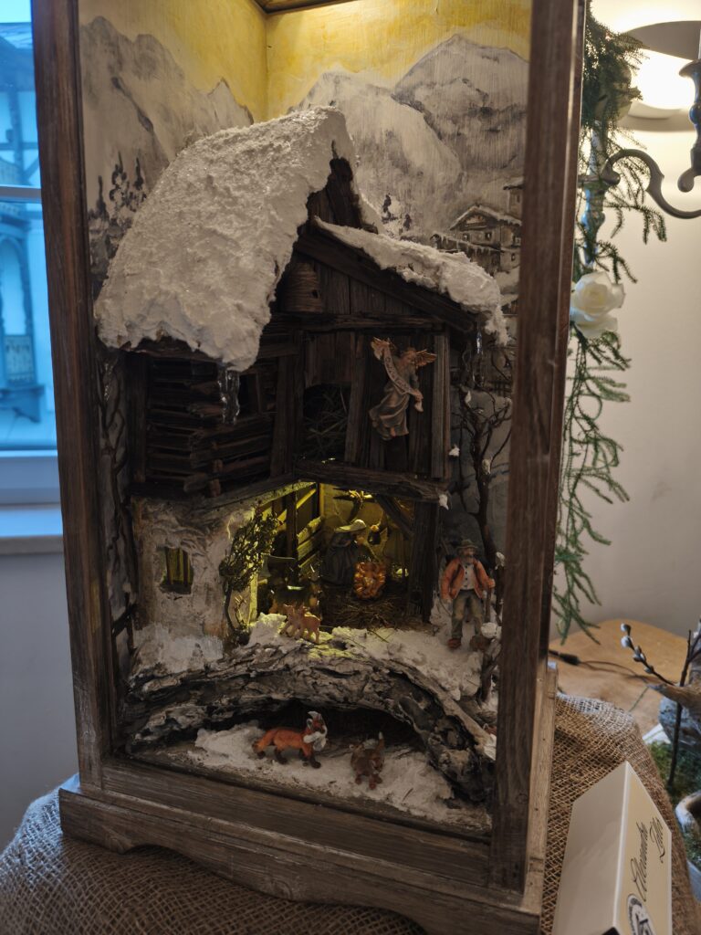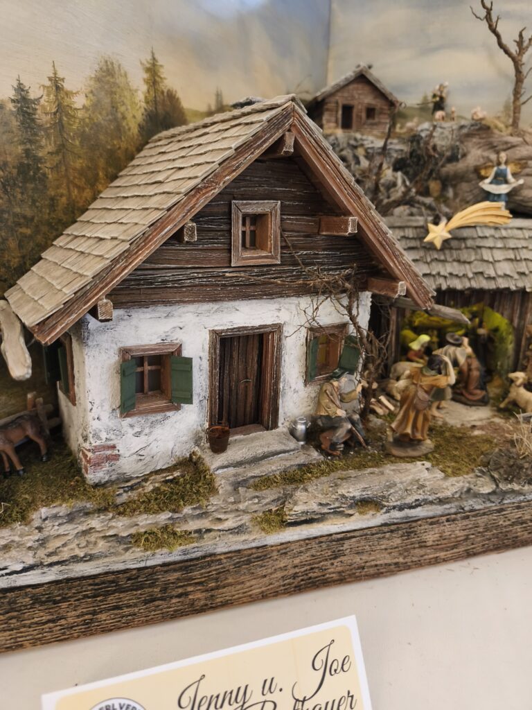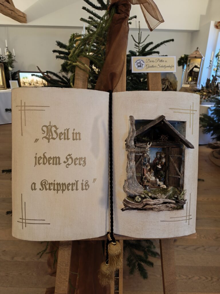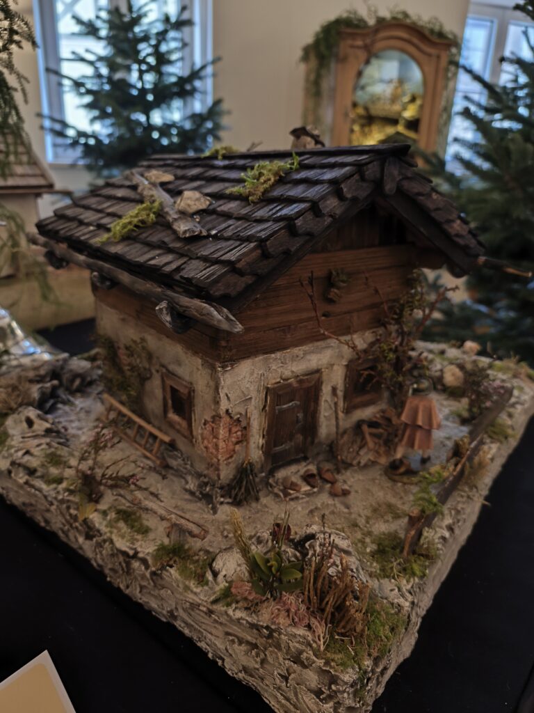 Die neu gebauten Krippen werden jährlich am 3. Adventwochenende im Katholischem Pfarramt in Bad Goisern ausgestellt. Zusätzlich zu den Kurskrippen werden Leihgaben unserer Vereinsmitglieder zu bewundern sein. Bewundert die Kripperl im wunderschönen Ambiente des Pfarrhofes und mit etwas Glück, könnt ihr die Verlosungskrippe gewinnen. Mit dem Kauf eines Loses unterstützt ihr unseren Verein. Auch die Einnahmen aus unserem „Kripperl-Cafe“ kommen unserem Verein zu Gute. Gern können Kuchen/ Torten auch nach Hause mitgenommen werden.