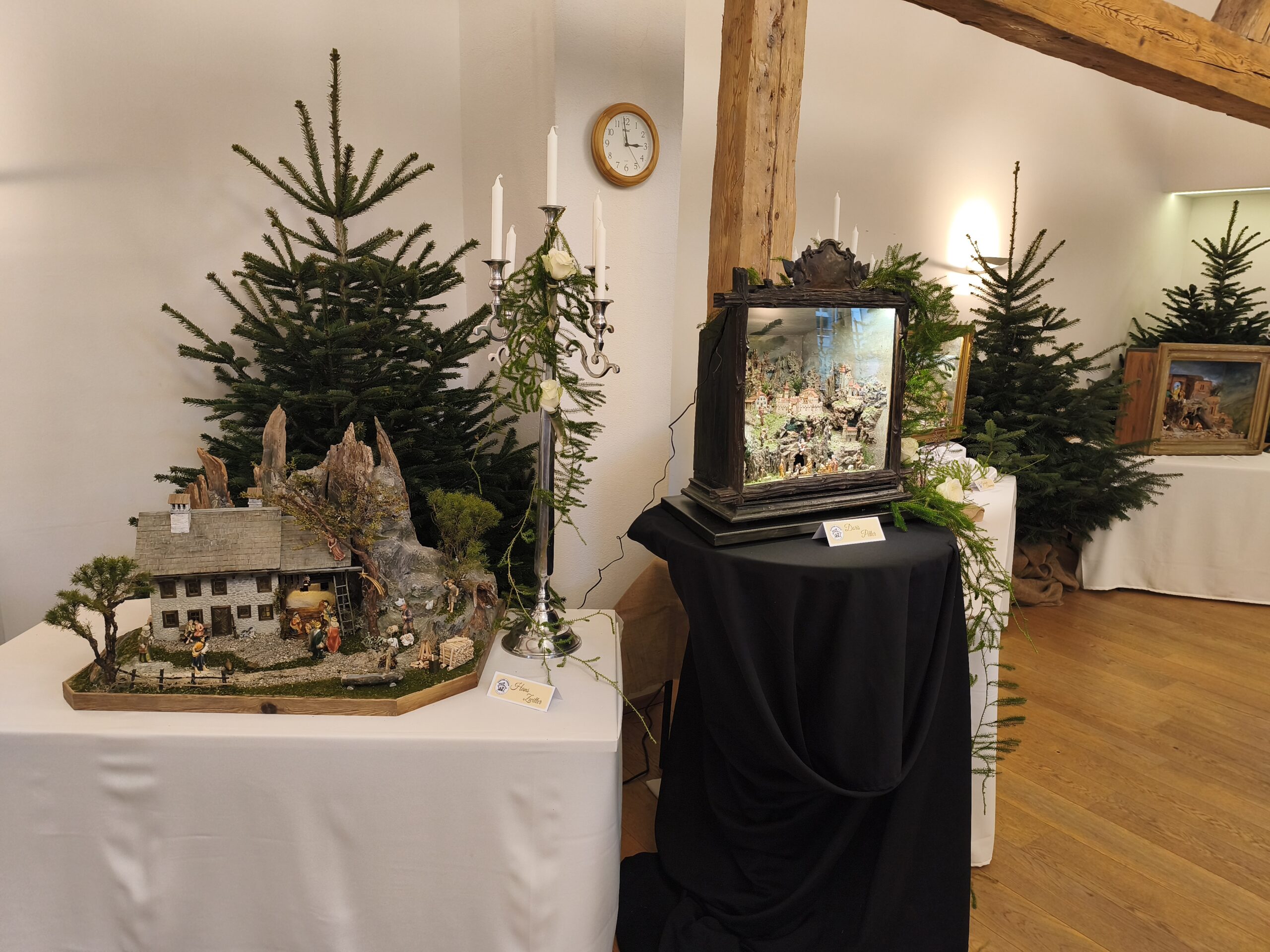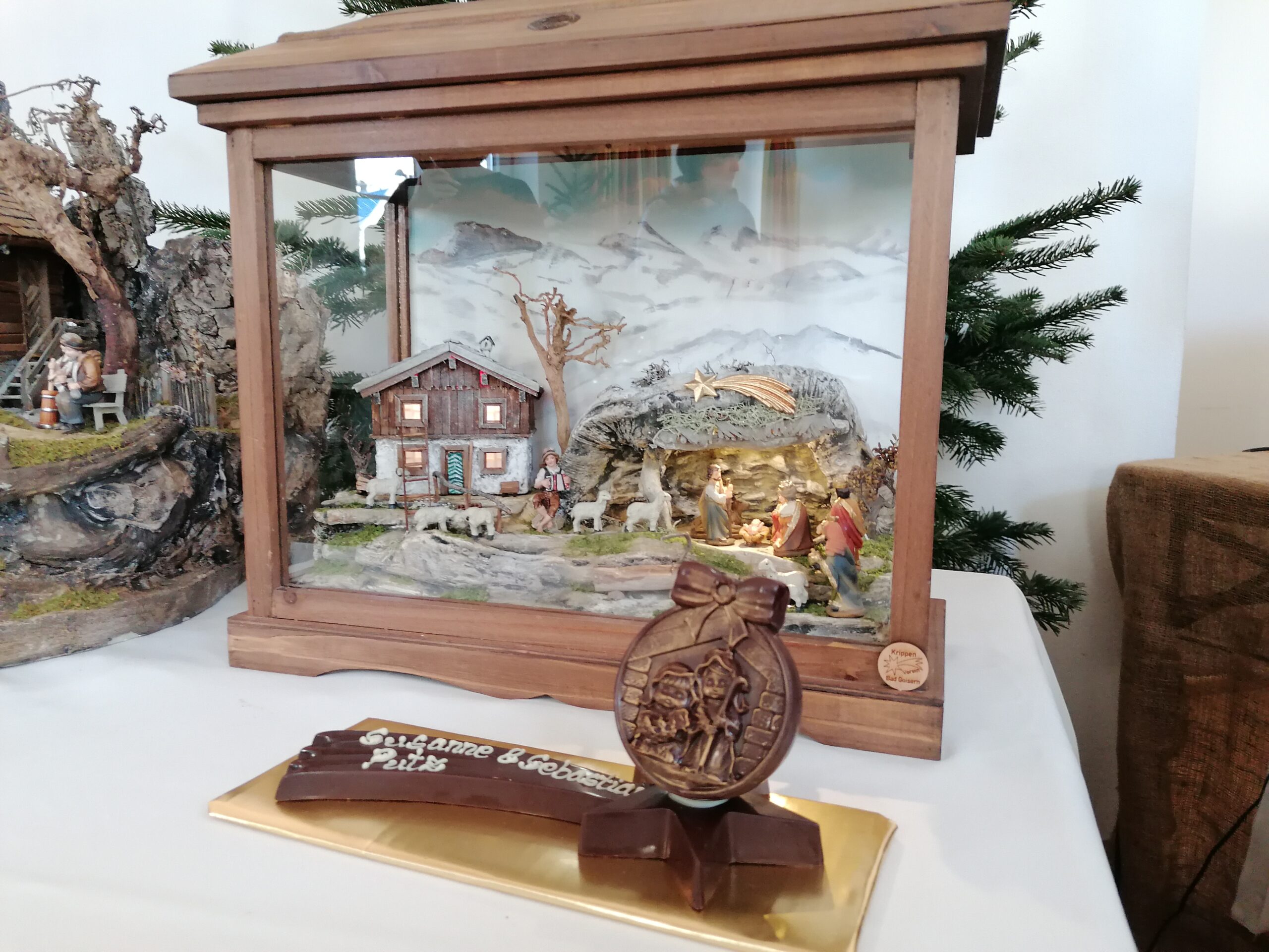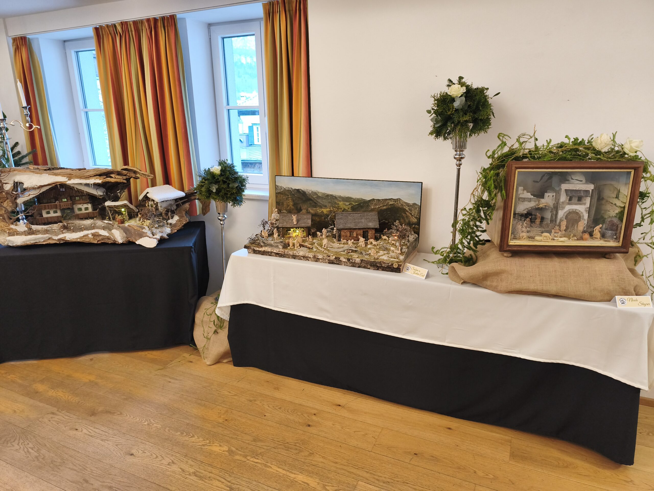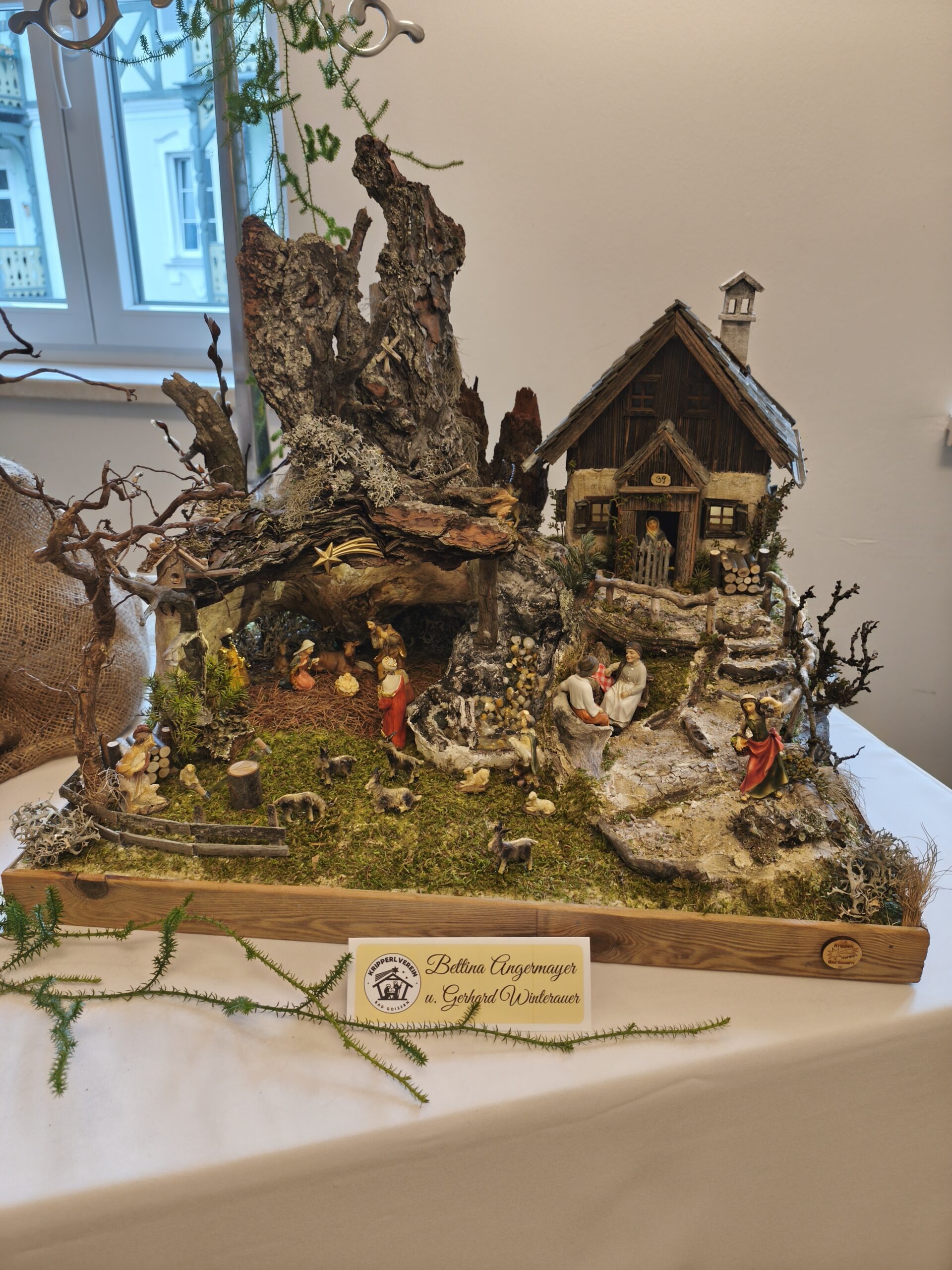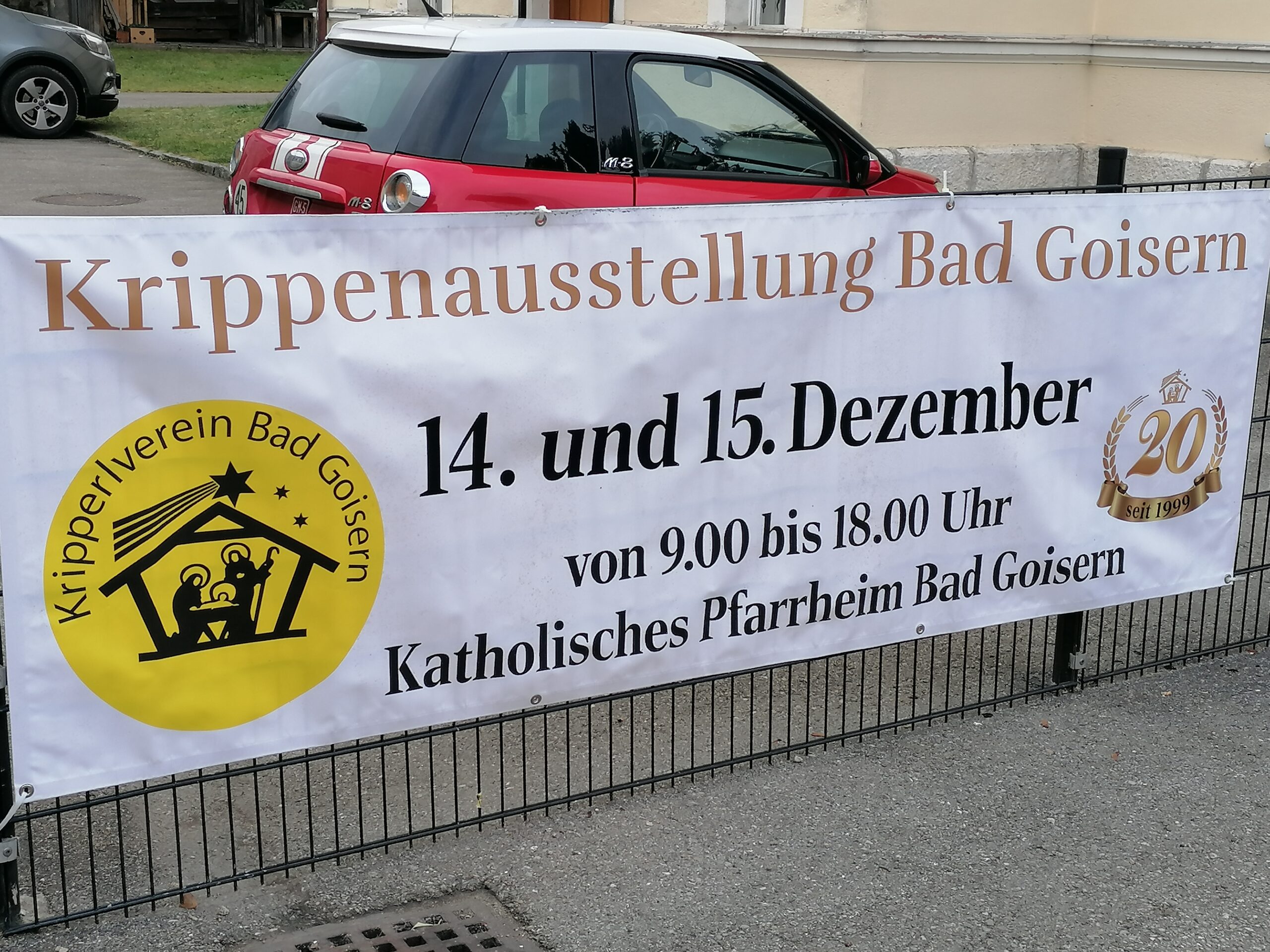 Die neu gebauten Krippen werden jährlich am 3. Adventwochenende im Katholischem Pfarramt in Bad Goisern ausgestellt. Zusätzlich zu den Kurskrippen werden Leihgaben unserer Vereinsmitglieder zu bewundern sein. Bewundert die Kripperl im wunderschönen Ambiente des Pfarrhofes und mit etwas Glück, könnt ihr die Verlosungskrippe gewinnen. Mit dem Kauf eines Loses unterstützt ihr unseren Verein. Auch die Einnahmen aus unserem „Kripperl-Cafe“ kommen unserem Verein zu Gute. Gern können Kuchen/ Torten auch nach Hause mitgenommen werden.