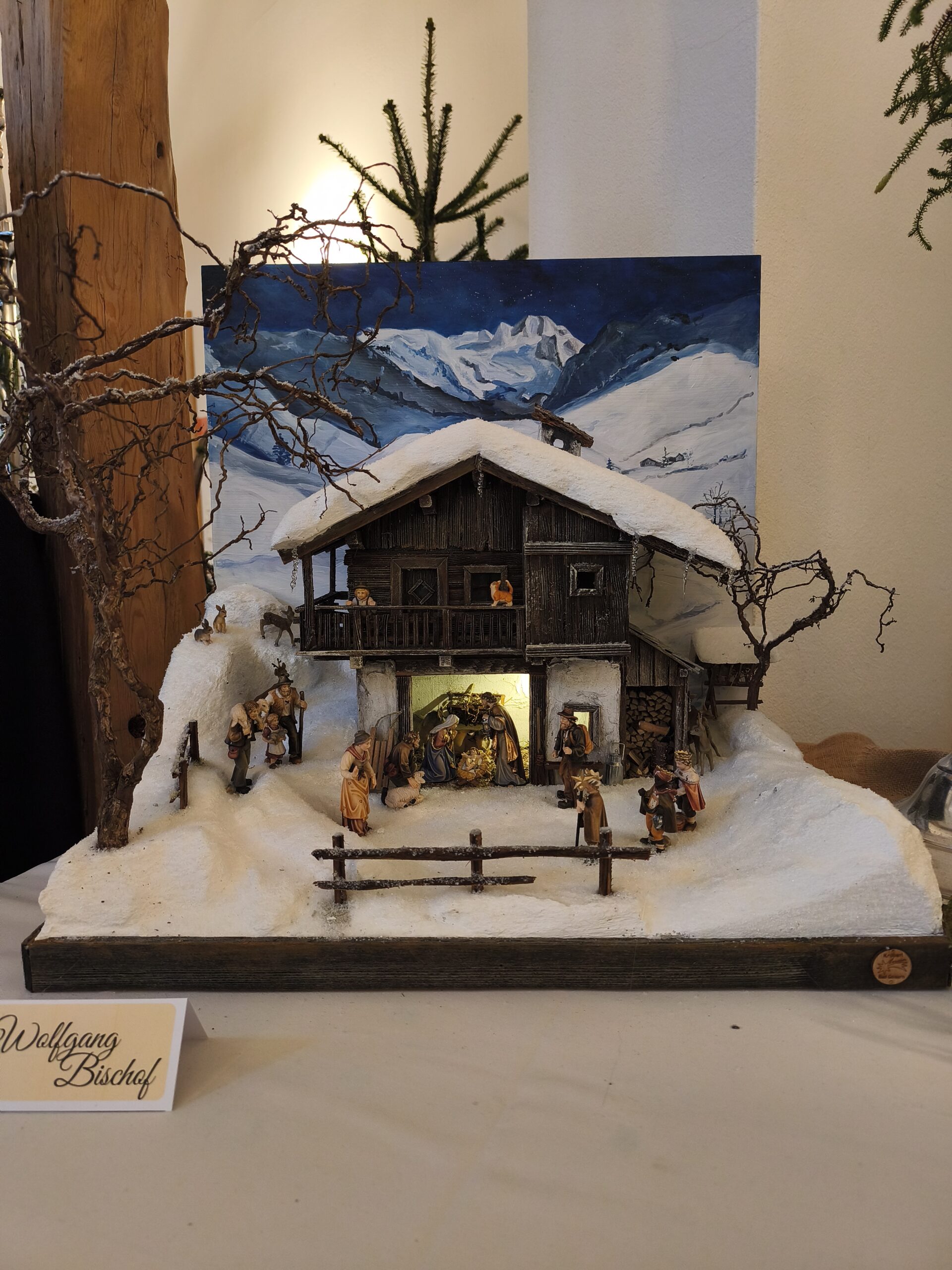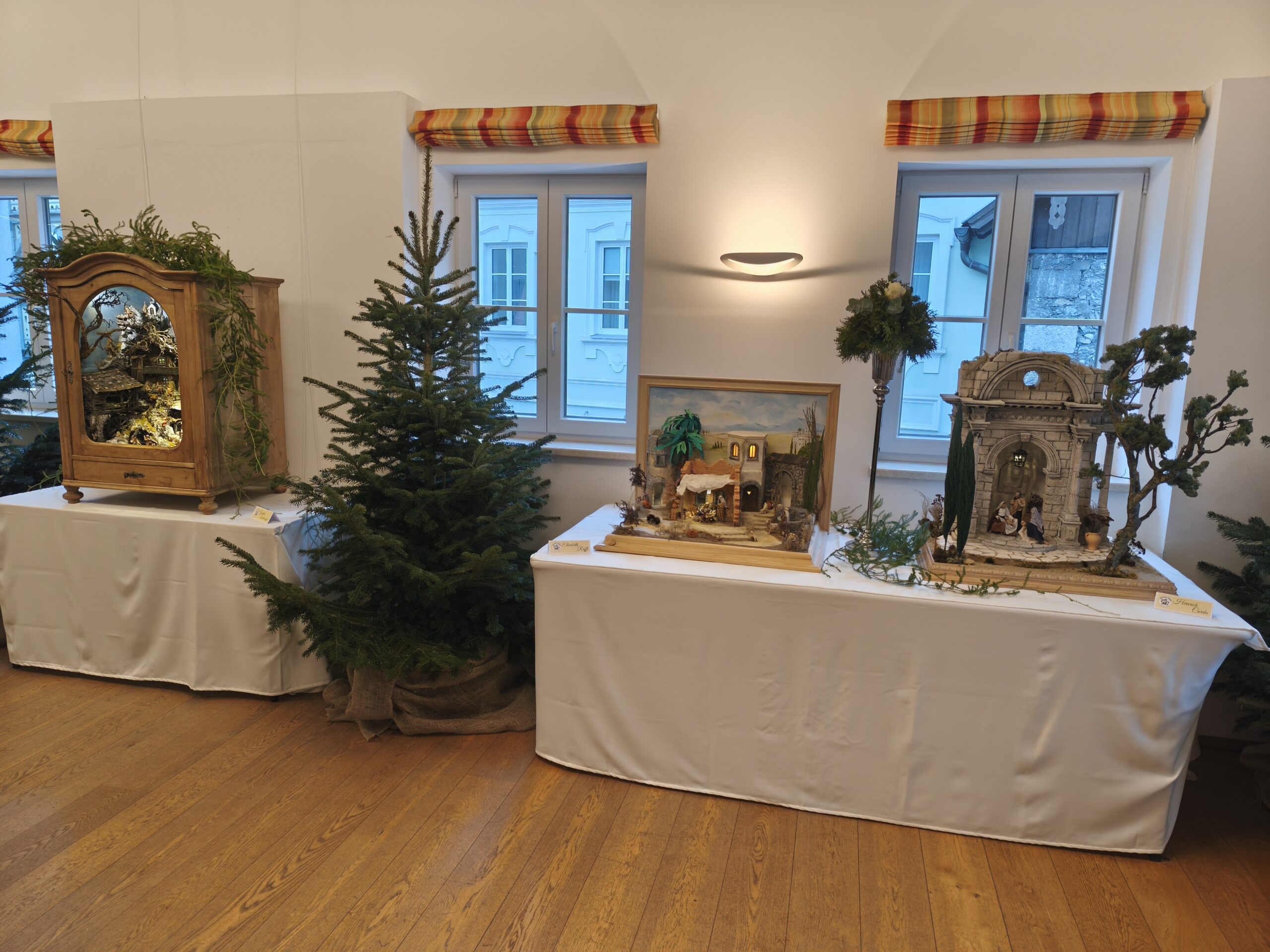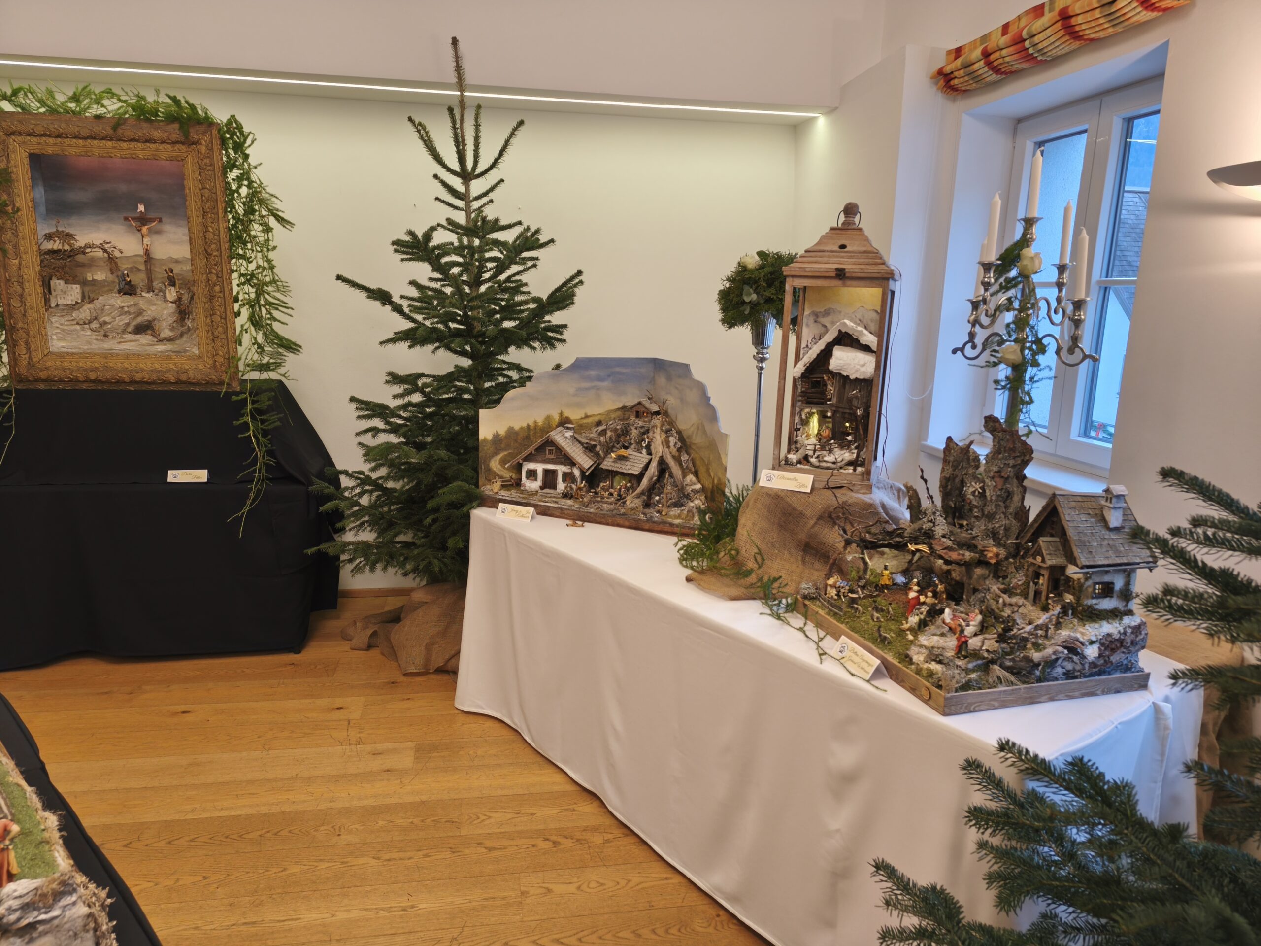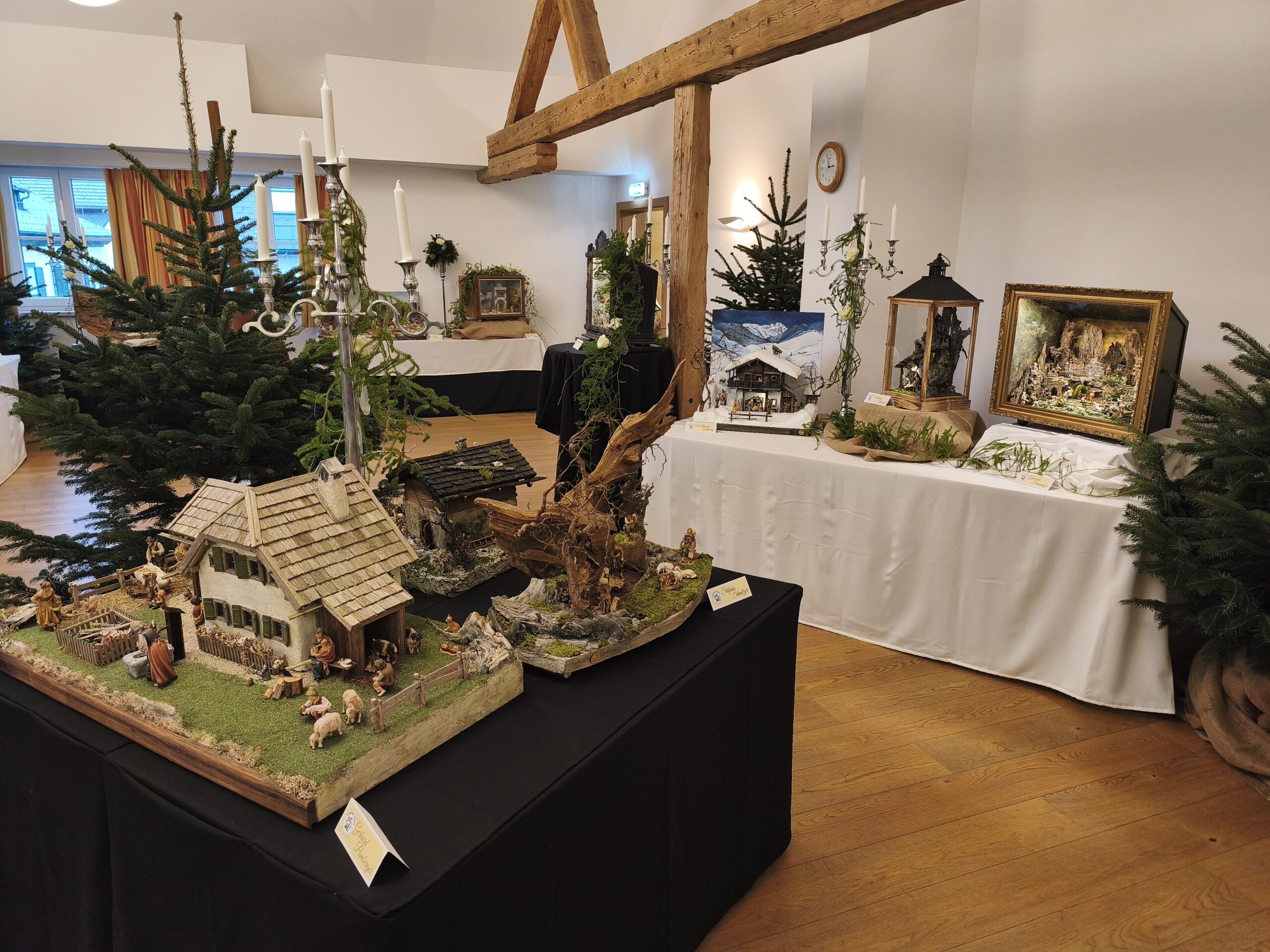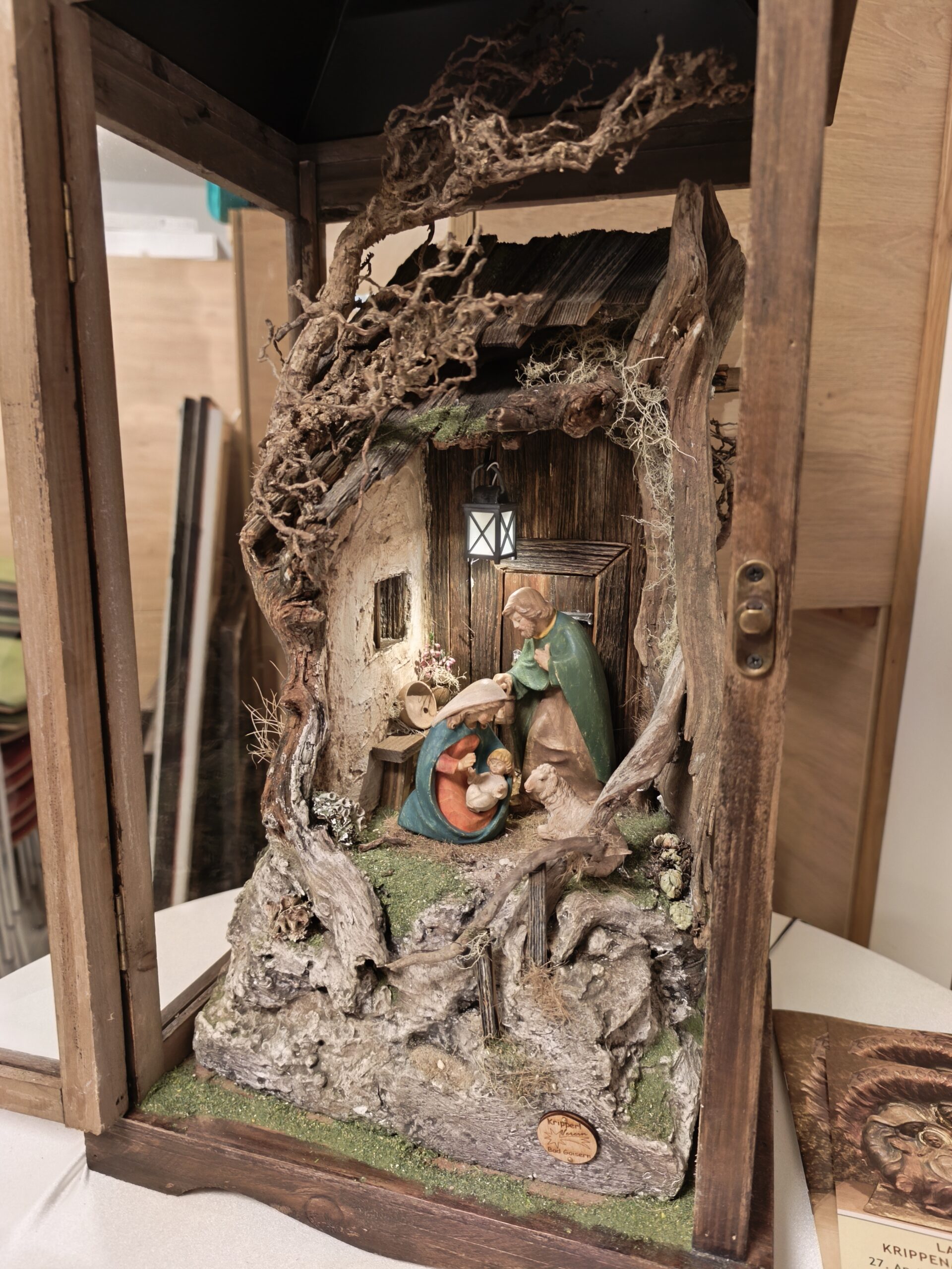 Die neu gebauten Krippen werden jährlich am 3. Adventwochenende im Katholischem Pfarramt in Bad Goisern ausgestellt. Zusätzlich zu den Kurskrippen werden Leihgaben unserer Vereinsmitglieder zu bewundern sein. Bewundert die Kripperl im wunderschönen Ambiente des Pfarrhofes und mit etwas Glück, könnt ihr die Verlosungskrippe gewinnen. Mit dem Kauf eines Loses unterstützt ihr unseren Verein. Auch die Einnahmen aus unserem „Kripperl-Cafe“ kommen unserem Verein zu Gute. Gern können Kuchen/ Torten auch nach Hause mitgenommen werden.