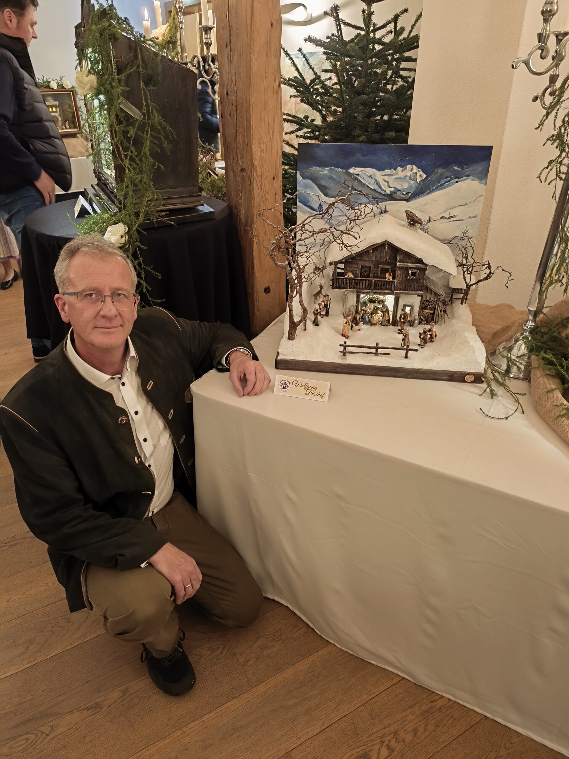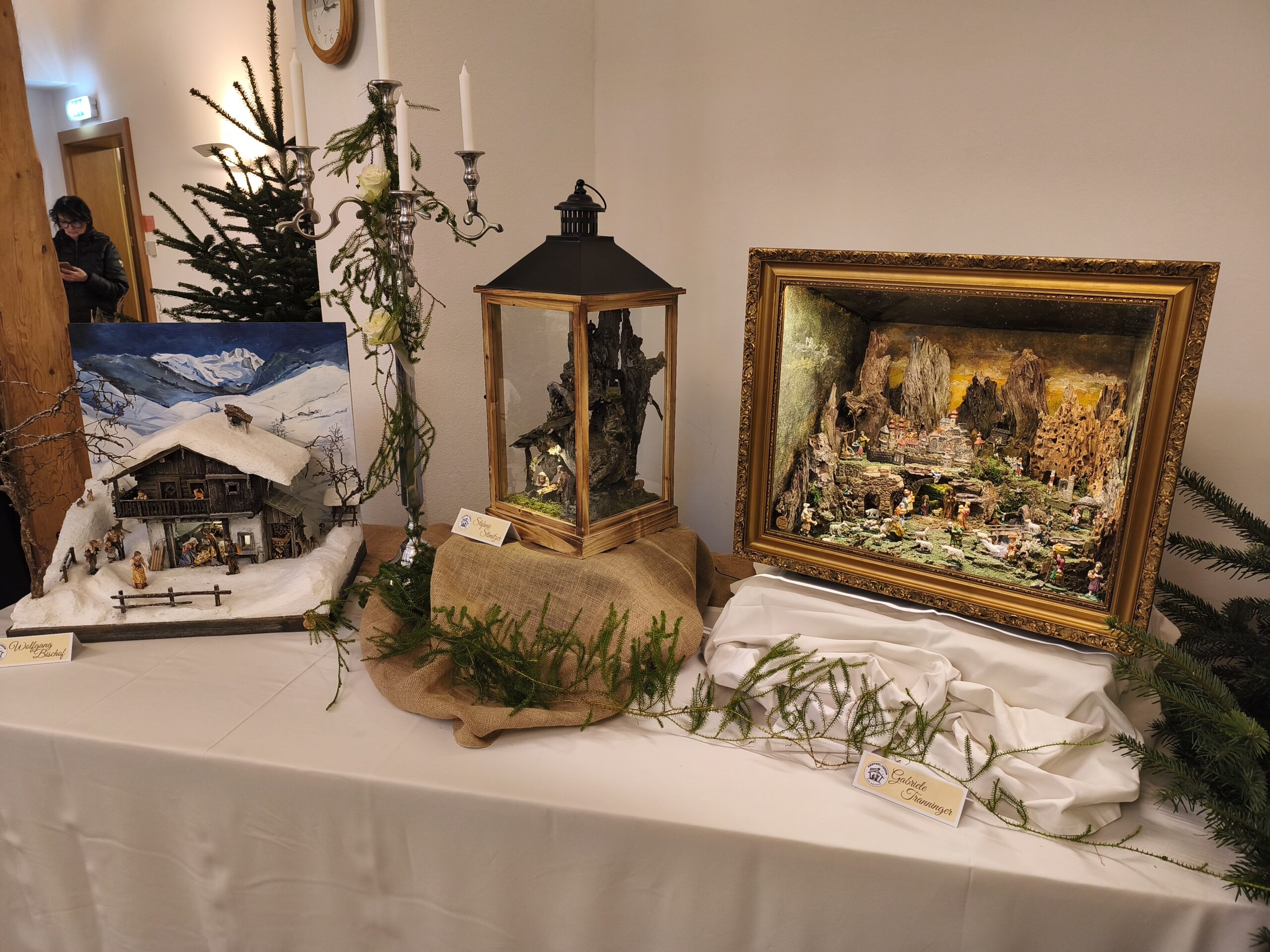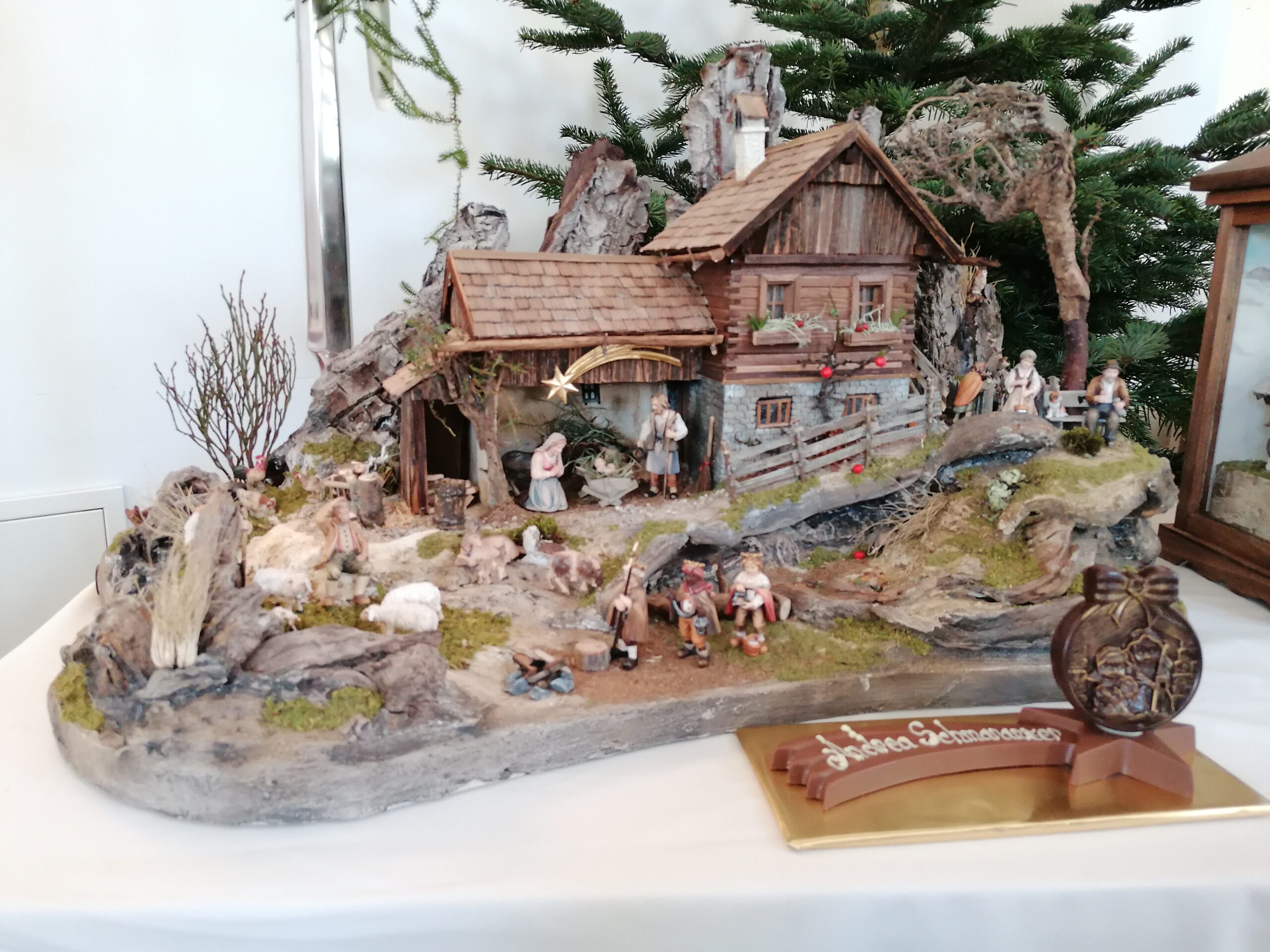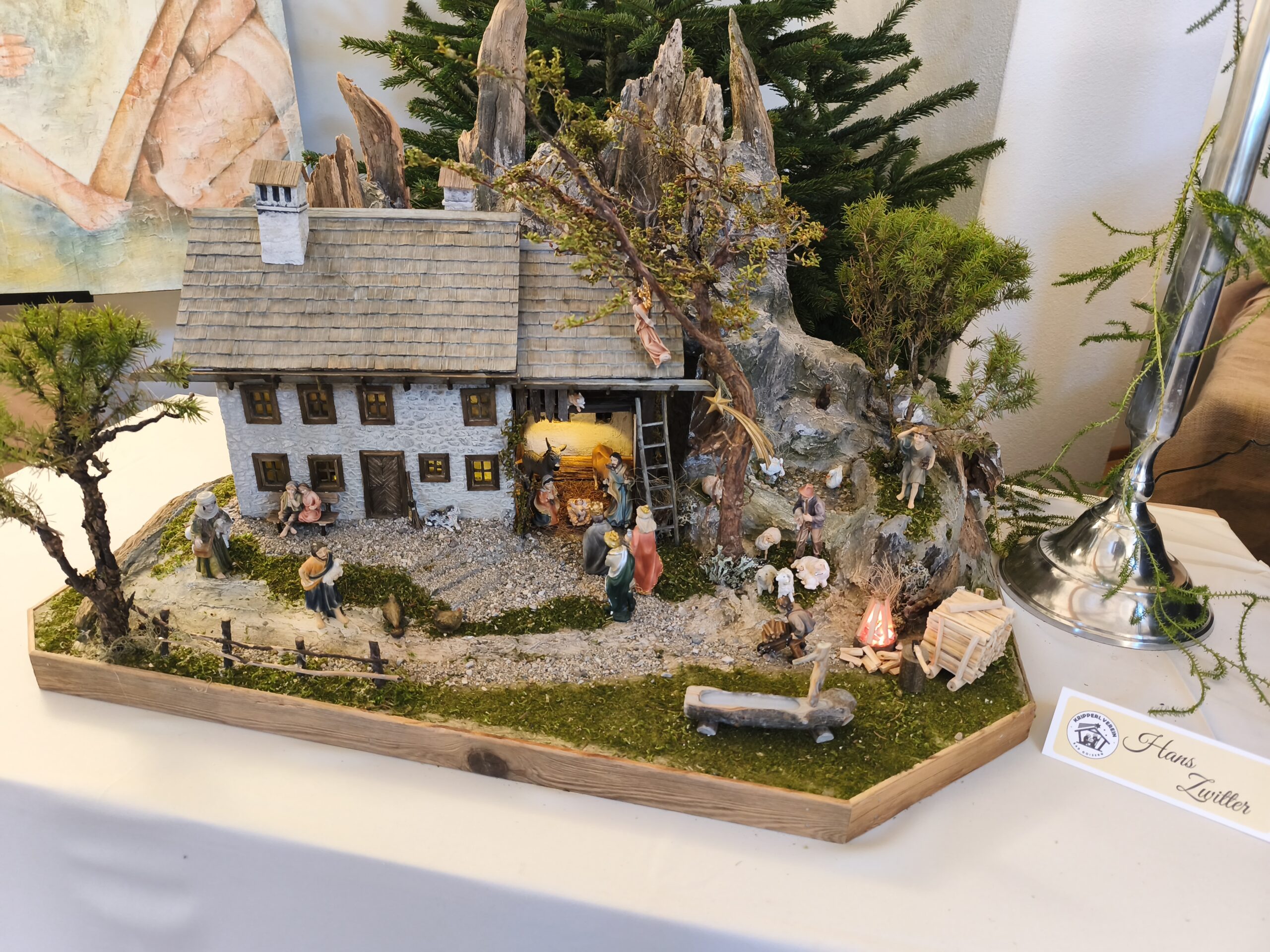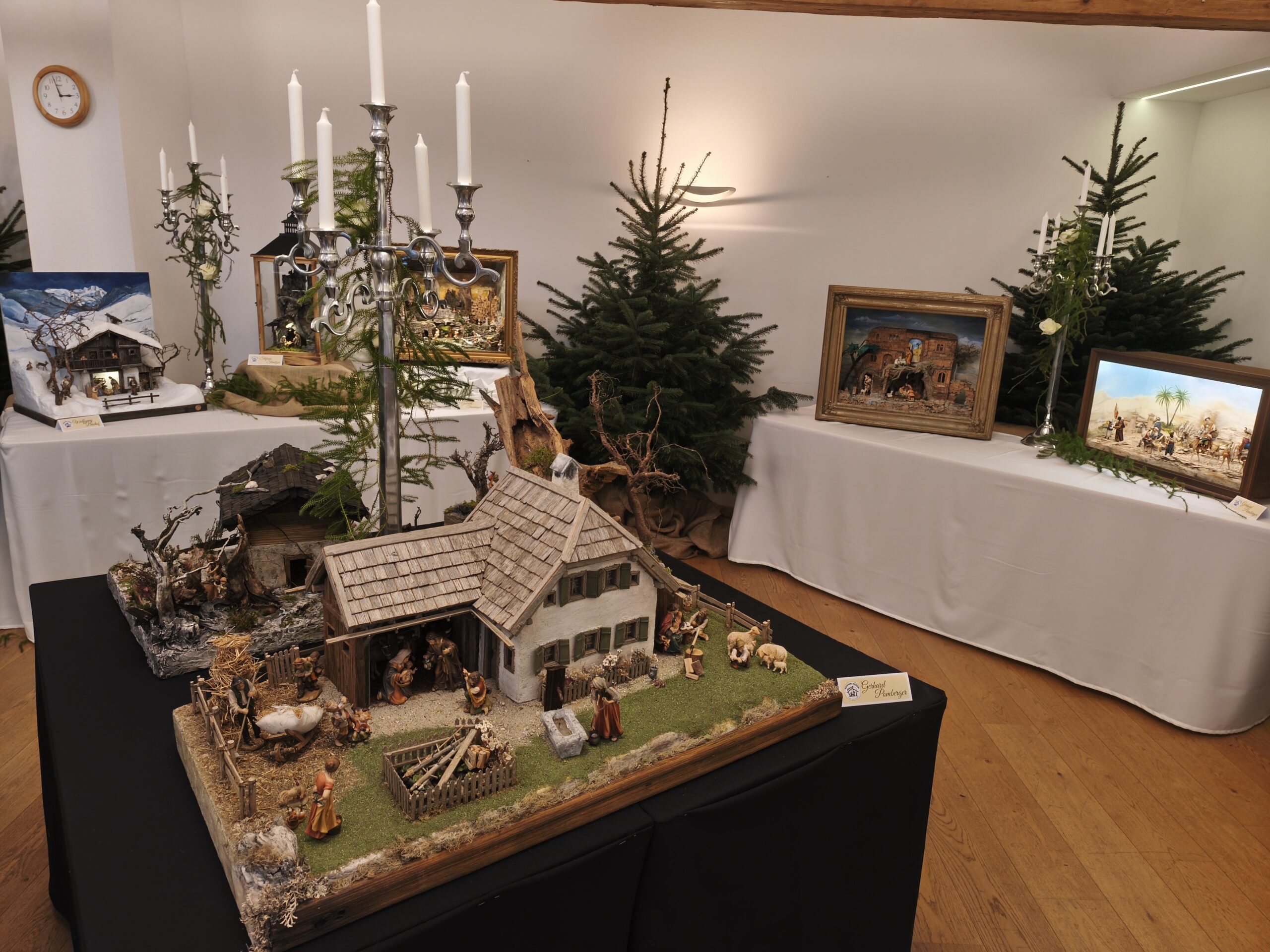 Die neu gebauten Krippen werden jährlich am 3. Adventwochenende im Katholischem Pfarramt in Bad Goisern ausgestellt. Zusätzlich zu den Kurskrippen werden Leihgaben unserer Vereinsmitglieder zu bewundern sein. Bewundert die Kripperl im wunderschönen Ambiente des Pfarrhofes und mit etwas Glück, könnt ihr die Verlosungskrippe gewinnen. Mit dem Kauf eines Loses unterstützt ihr unseren Verein. Auch die Einnahmen aus unserem „Kripperl-Cafe“ kommen unserem Verein zu Gute. Gern können Kuchen/ Torten auch nach Hause mitgenommen werden.