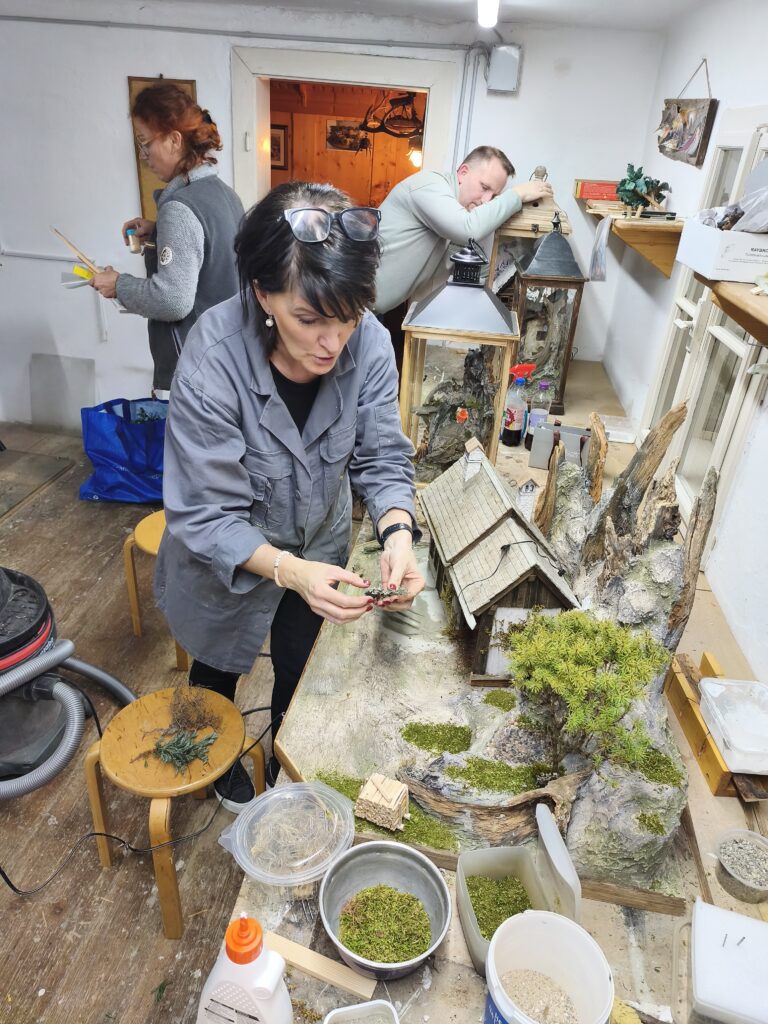 1 x im Jahr veranstalten wir einen Kurs – immer im Herbst (ab Ende September/ Anfang Oktober). Die Kursteilnehmer treffen sich 2x wöchentlich Mittwoch und Freitag jeweils von 19 – 22 Uhr. An ca. 20 Abenden arbeiten die Teilnehmer unter Anleitung von unseren Krippenbaulehrern an ihren Krippen. Spezialisiert haben wir uns bei den heimatlichen Krippen auf ortstypische Häuser und Almhütten aus dem Salzkammergut, die mit Originalholz von alten Stadeln und Häusern möglichst naturgetreu gebaut werden. Selbstverständlich werden in unseren Kursen auch orientalische Krippen gefertigt. Wir wollen der Phantasie keine Grenzen setzen und so kann jeder Kursteilnehmer unter fachkundiger Anleitung seine persönliche Krippe bauen. Uns ist wichtig, dass jeder Teilnehmer seine eigenen Vorstellungen umsetzen kann. Es entstehen somit ganz individuelle/ persönliche Krippen. Natürlich ist handwerkliches Geschick von Vorteil, aber wir leiten unsere Teilnehmer so an, dass immer ein schönes Ergebnis herauskommt.